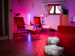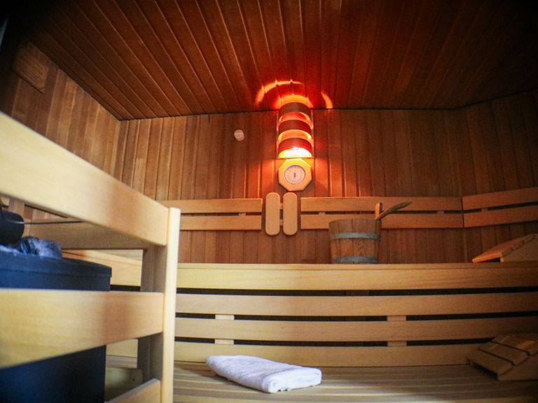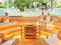 Neben der Sauna erwarten dich verschiedene Aufgüsse, Infrarotlampen, Fußbäder, eine Soundbox, Ambientelicht und eine Wasser- & Teebar.